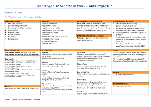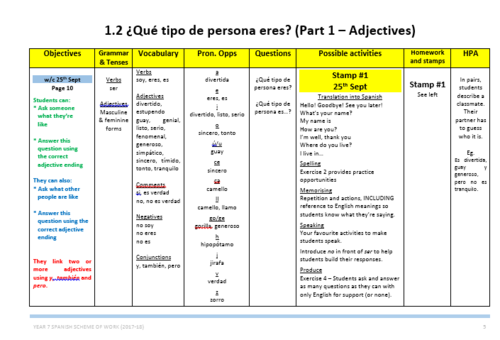 Year 7 Spanish Scheme Of Work Whole Year And Very Detailed Based On Viva 1 Teaching Resources